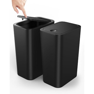 Aoibox 2 Pack Small Trash Can with Press Top Lid, 4 Gallon Garbage Bin with Pop-Up Lid for Bathroom, Office, Bedroom, Living Room, Black