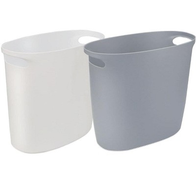 Aoibox Small Trash Can Wastebasket for Kitchen, Office, Bathroom, Bedroom - Modern Design, Durable Polypropylene, Easy to Clean (White+Gray, 2 Pack)