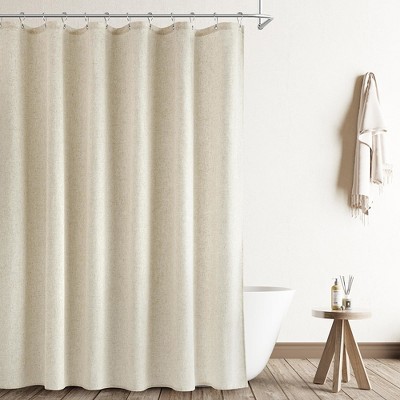 Aoibox Natural Linen Shower Curtain, Country Boho Farmhouse Bath Decor Beige Neutral Cloth Weighted Textured Fabric Bath Curtain with Hooks, Cream