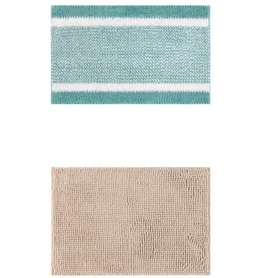 Unique Bargains Chenille Striped Machine Washable Non-Slip Soft Plush Shaggy Bathroom Rug Mat 2 Pcs