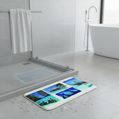 Evideco French Home Goods Bathroom Rug Memory Foam Mat Paradise Print Blue 30"L x 18"W