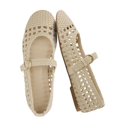 CUSHIONAIRE Windsor Woven Womens Flats with Adjustable Strap – Comfortable Mary Jane Ballet Flats for Women