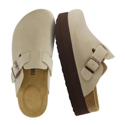 CUSHIONAIRE Loom Platform Clogs for Women, Stylish Vegan Suede Closed Toe Womens Clogs with Adjustable Buckle and Memory Foam Cork Footbed