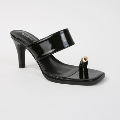 Berness Women's Catha Patent Wide Strap Slide Heels with Metallic Toe Ring
