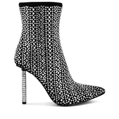 Gem Blaze Patterned Rhinestones Detail Stiletto Boots