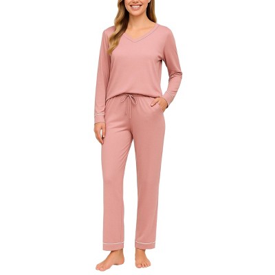 YafeMarte Women’s Super Soft Knit 2-Piece Long Sleeves Pajama Set with Contrast Design