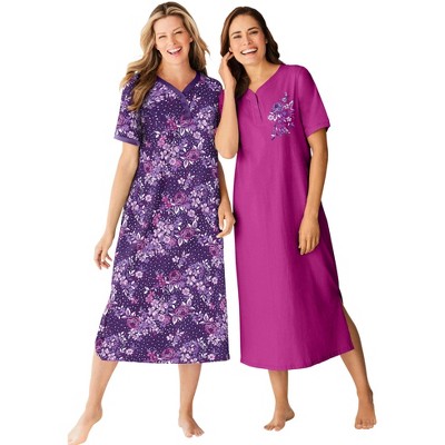 Dreams & Co. 2-Pack Long Henley Sleepshirt