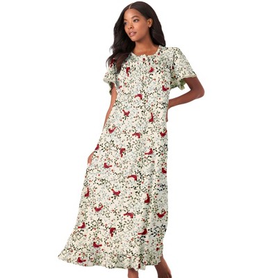 Dreams & Co. Long Floral Print Cotton Gown