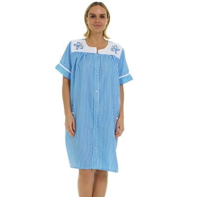 JEFFRICO House Dresses for Women with Pockets - Lightweight Breathable Short Sleeve Muumuu & Nightgowns - Snap Front Housecoat and Dusters