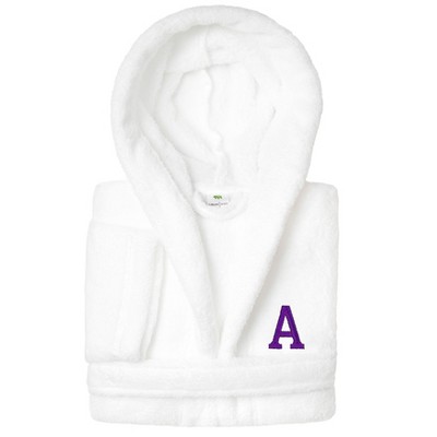 Personalized Linum Kids 100% Polyester SUPER PLUSH Double Brushed Hooded Bathrobe in Purple Bookman Font