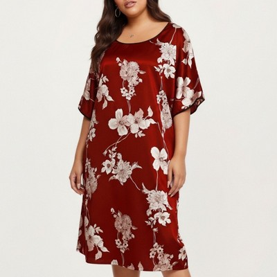 Anna-Kaci Lounge Women's PLus Size Satin Nightgown with Allover Floral Print Relaxed Fit Scoop Neckline and Flowing Short Sleeves