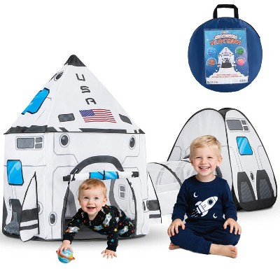 Kids Tent Toddlers Play Tunnel Tent White Rocket Ship Pop Up Tent Indoor Outdoor Spaceship Playhouse Tent Birthday Christmas Gift For Boy Girl Age 3-8