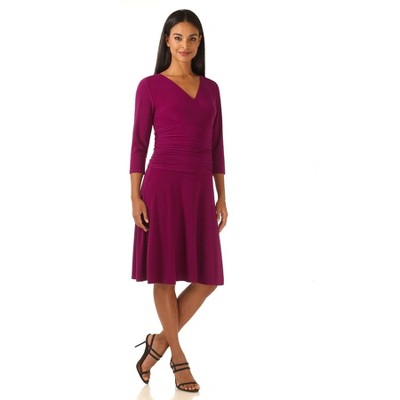 Rekucci Women's Slimming 3/4 Sleeve Fit and Flare Crossover Tummy Control Dress