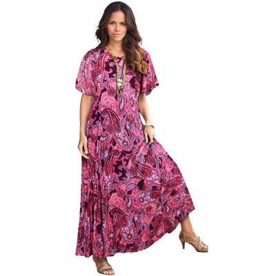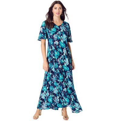 Roaman's Petite Plus Size Hand Crinkled Flutter-Sleeve Maxi Dress