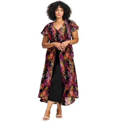 Roaman's Plus Size Flutter Sleeve Hand Crinkled Maxi Dress – Curvy A-Line