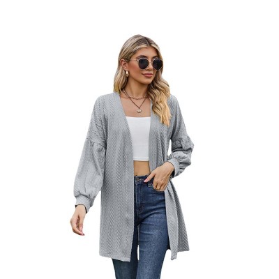 Women's Long Knit Cardigan with Textured Design - Casual Layering Piece for Outdoor Wear