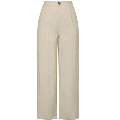INSPIRE CHIC Women's Elastic High Waist One Button Lightwieght Wide Leg Pants with Pockets