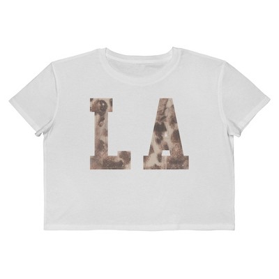 Rerun Island Women's La Letters Texture Short Sleeve Graphic Cotton Cropped Loose T-shirt - Bright White XL