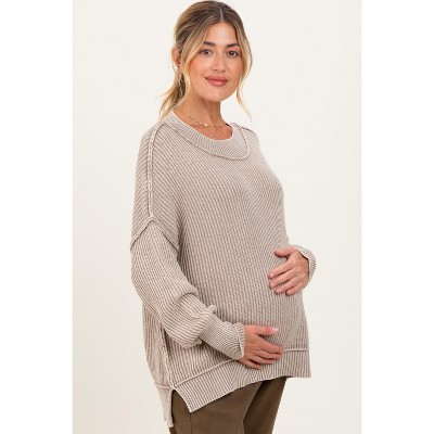 Pinkblush Mocha Washed Side Slit Oversized Maternity Sweater