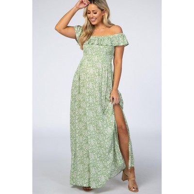 Pinkblush Green Floral Ruffle Off Shoulder Maternity Maxi Dress