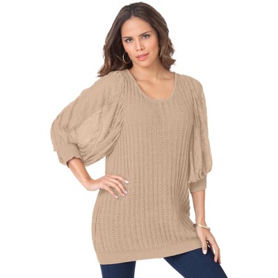 Roaman's Plus Size Crochet Pullover Sweater With Sweetheart Neckline