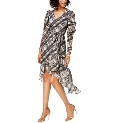 Taylor Womens High Low Metallic Plaid Sheath Dress
