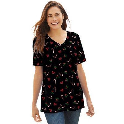 Woman Within Perfect Printed Short-Sleeve V-Neck Tee