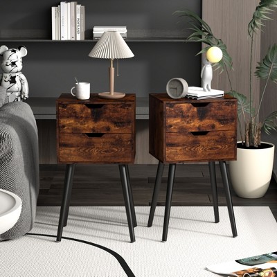 Sevobal Nightstands 2 Set Of Double Draw Nightstand With Drawers, Open Compartment, Elegant And Simple Design, Brown, 15.8"*11.9"*28.1"