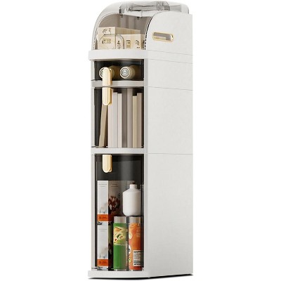 3 Tiers Slim Bathroom Storage Cabinet, Waterproof Narrow Floor Bathroom Cabinet with Wheels & Toilet Paper Holder, for Small Space in Bathroom