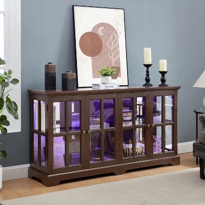 SAINTCY 4-Door LED Antique Curio Cabinet with Glass Doors