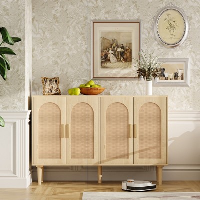 Sevobal Decorative Storage Cabinets, Rattan Buffet Sideboard Cabinet Cupboard for Kitchen, Living Floor Cabinet, Yellow 47.2*13.8*31.1