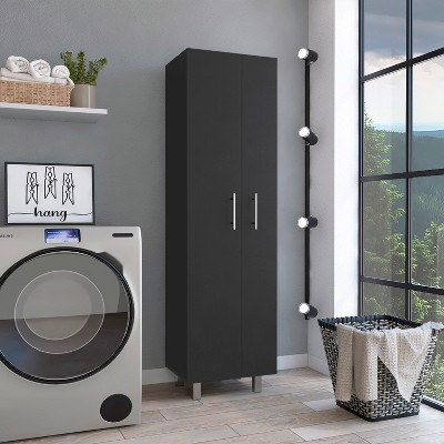 Cleaning Cabinet with Five Shelves and Broom Hangers, Black / White