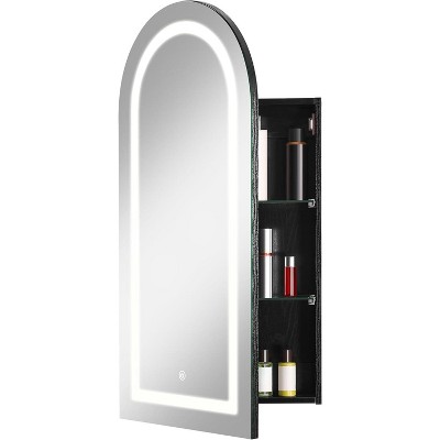 DIYSET Arched Medicine Cabinet With LED Mirror, Recessed Bathroom Wall Cabinet with Integrated Storage, Wall-Mounted Mirror