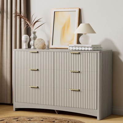 6-drawer dressing table, rounded drawer slot wooden box, dressing table TV stand, and storage rack for bedroom and hallway, gray