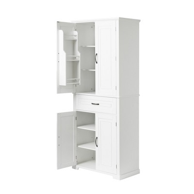 Rbied 24.80 in. W x 69.69 in. H x 9.06 in. D White Over The Toilet Storage Cabinet with Open Shelves & Doors