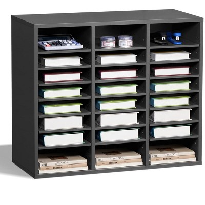27 Compartment Literature Organizer Adjustable Shelves Wood Mail Center for Office School Home