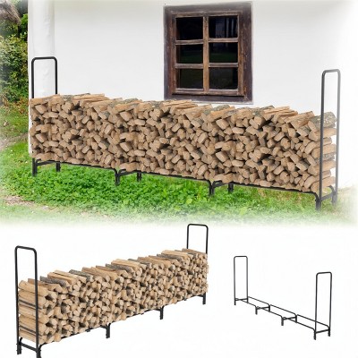 UNHO 8/12FT Heavy Duty Firewood Rack Metal Iron Long Storage Log Stand Holder for Indoor Outdoor Backyard