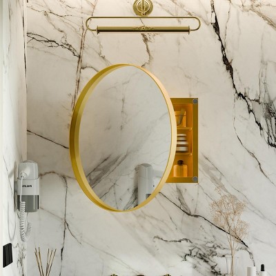 Gulches 31.5 Inch Round Surface-Mount Metal Medicine Cabinet with Mirror, 2 Adjustable Glass Shelves, 180¡ã Reverse, Matte Gold