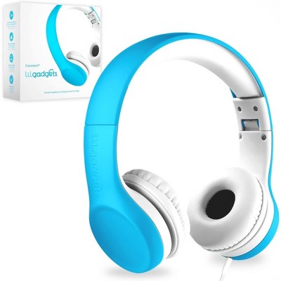 LiLGadgets LilGadgets Connect+ Kids Headphones Wired with Microphone, Volume Limiting for Safe Listening, Blue