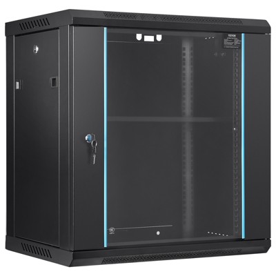 VEVOR 12U Wall-Mounted Server Network Cabinet, 15.5'' Depth, Secure Rack Enclosure, Supports up to 200 lbs, Lockable Glass Door & Sides