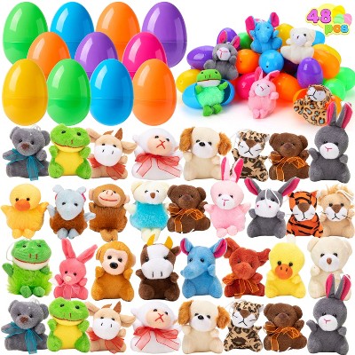 Joyfy 12/24/48 Packs Prefilled Easter Eggs with Plush Toy Set, Mini Stuffed Animals Plush Toys for Kids Easter Egg Hunt, Party Favors, Basket Fillers