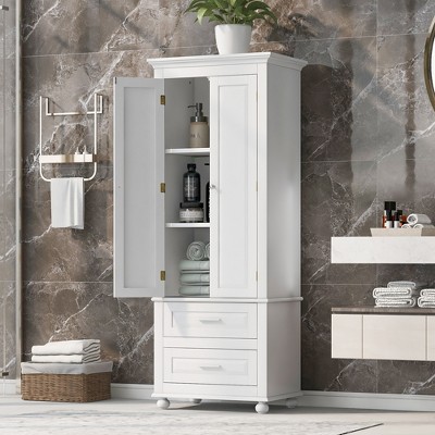 TiramisuBest 79" Freestanding Tall Bathroom Storage Cabinet with Doors and Drawers, Adjustable Shelf & Open Shelves, White