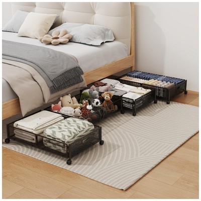 MOEPISY 2-Pack Metal Under Bed Storage with Wheels - Tool-Free Assembly Rolling Underbed Drawers