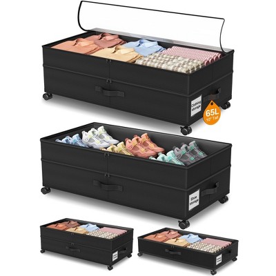MOEPISY 2-Pack Black Bamboo Under Bed Storage with Wheels - Rolling Basket with Large Dust Bag for Underbed