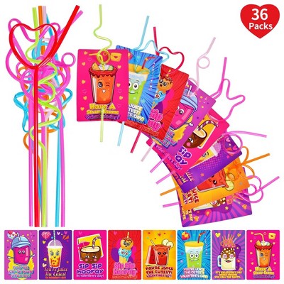 Fun Little Toys 36 PCS Valentine's Day Gifts for Kids, Drinking Straws for Classroom Exchange, Party Favors, and Prizes
