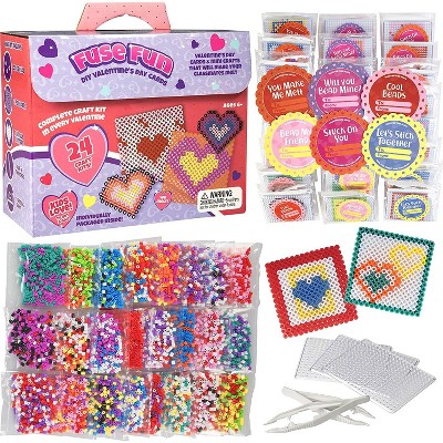 Heart Themed Fuse Bead Kits (24ct)- Perfect Goodie Bag Party Favors - Includes Pixel Art Craft Activity w Perler Beads- Valentines Day Card Decor