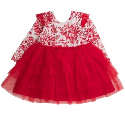 RuffleButts Toddler Girls Flutter Tulle Long Sleeve Twirl Dress
