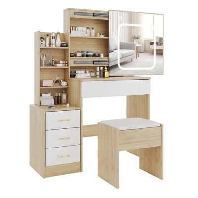 Whether you want to want to try on makeup trends or want to keep up your self-care routines, a good vanity table makes it a whole lot easier. At Target, there are a variety of vanity tables available. First, find the right table size for your space. If you’re looking for storage, a vanity with drawers is a great way to keep organized. Drawers help keep the counter tidy and keep all your essentials at easy reach. Pick from a range of mirrors, available in different sizes and shapes to suit your needs and match the decor of your bedroom. There are vanity sets with multiple mirrors to help you find the perfect angle for your beauty routine. Choose vanity sets that come with a comfy stool for your convenience. For space-saving needs, there are multi-functional vanity tables, with flip-top mirrors and storage, that doubles as a desk when closed. Be it your bathroom or bedroom, a vanity adds style and functionality to any space.