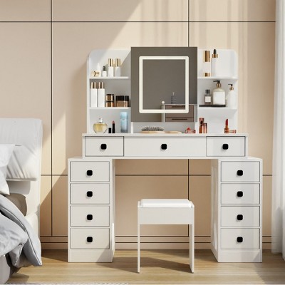 Whether you want to want to try on makeup trends or want to keep up your self-care routines, a good vanity table makes it a whole lot easier. At Target, there are a variety of vanity tables available. First, find the right table size for your space. If you’re looking for storage, a vanity with drawers is a great way to keep organized. Drawers help keep the counter tidy and keep all your essentials at easy reach. Pick from a range of mirrors, available in different sizes and shapes to suit your needs and match the decor of your bedroom. There are vanity sets with multiple mirrors to help you find the perfect angle for your beauty routine. Choose vanity sets that come with a comfy stool for your convenience. For space-saving needs, there are multi-functional vanity tables, with flip-top mirrors and storage, that doubles as a desk when closed. Be it your bathroom or bedroom, a vanity adds style and functionality to any space.