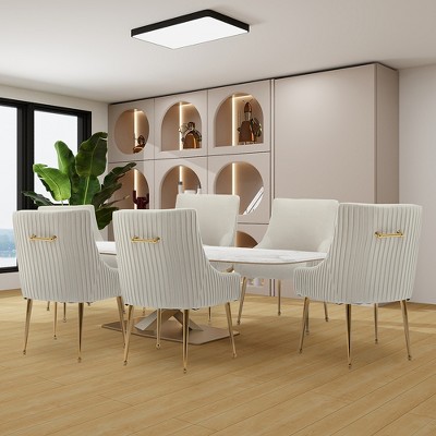 SEYNAR Modern Glam Boucle Pleated Velvet Dining Chair or Vanity Chair Set of 4 with Rear Handle